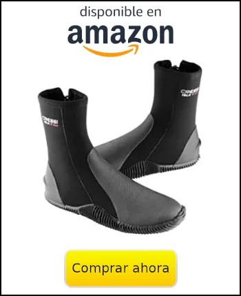 Los botines que me están dando un gran resultado son los SEAC Rock Boots HD ya que su calidad es equiparable a las grandes marcas para botines de traje seco, pero estas tienen un precio mucho más asequible. En mi caso llevan muchísimas inmersiones y las mantengo como nuevas.